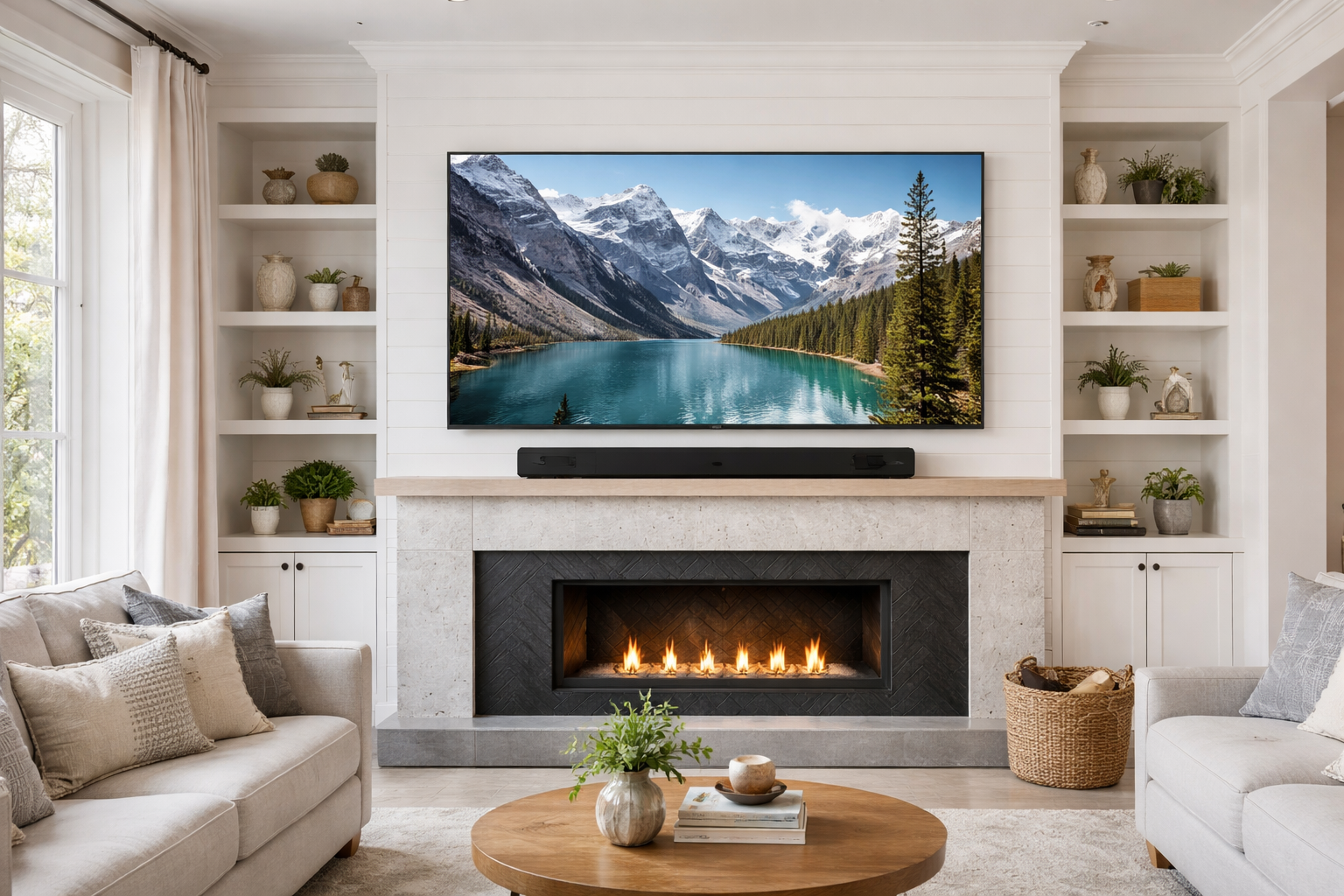 In-wall wire concealment safely hides all cables for a clean, seamless, built-in look — no exposed wires, no clutter.